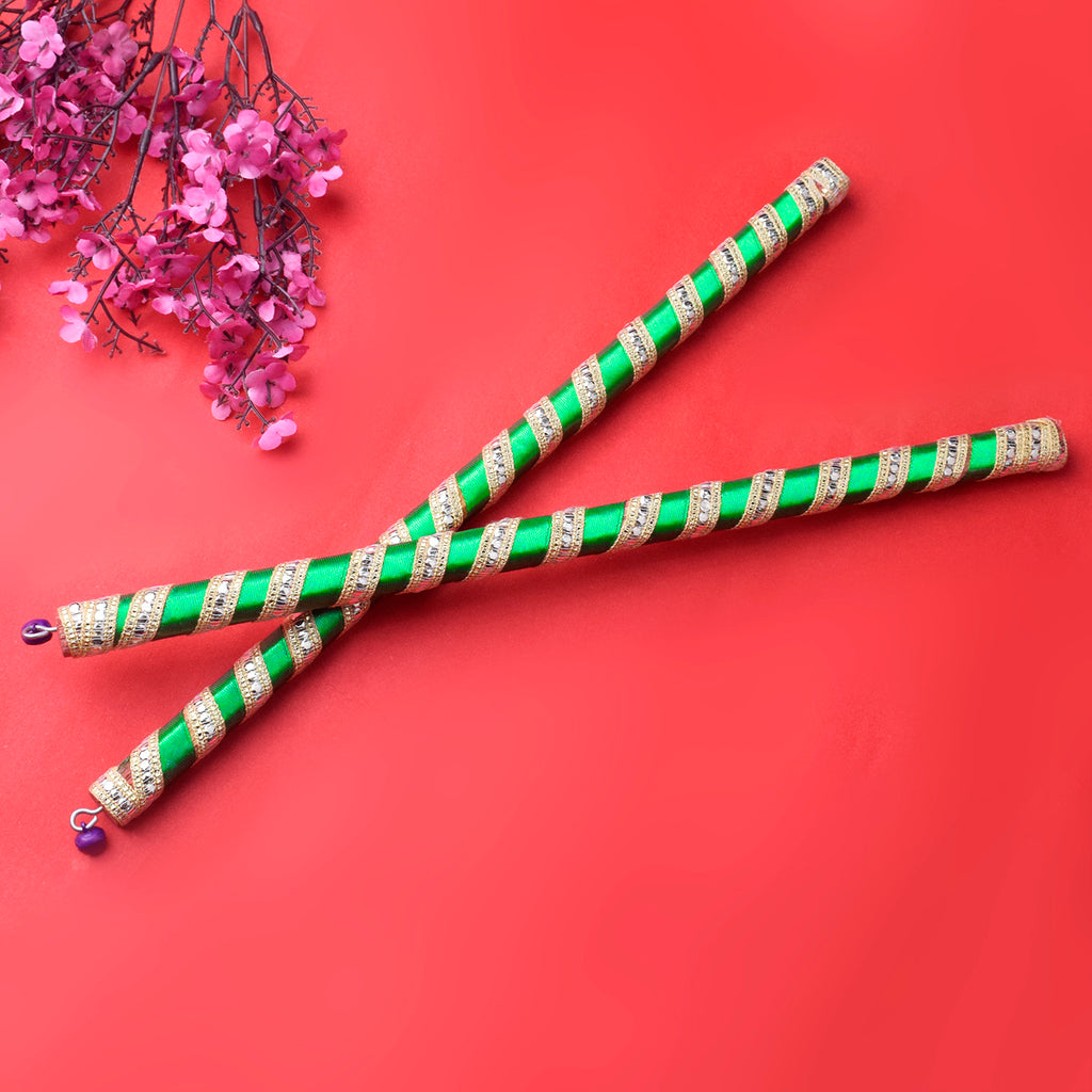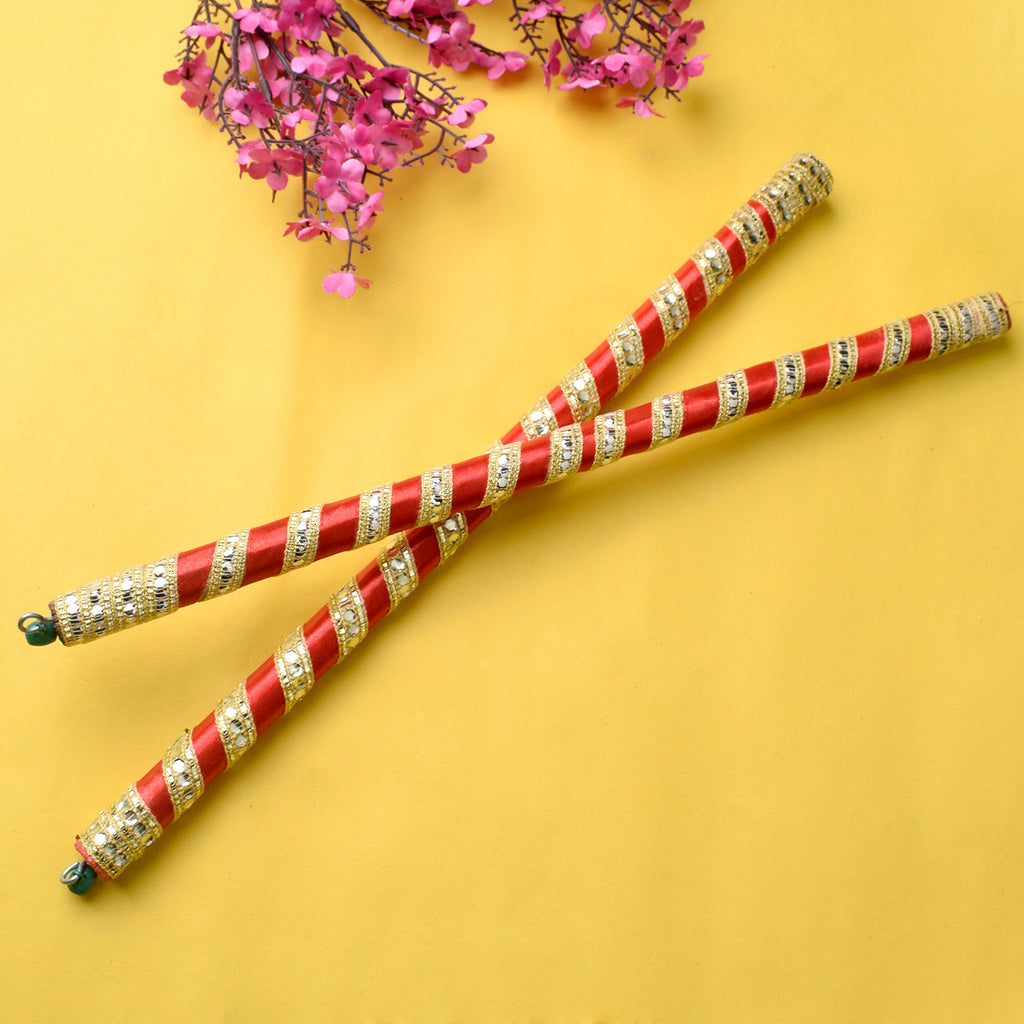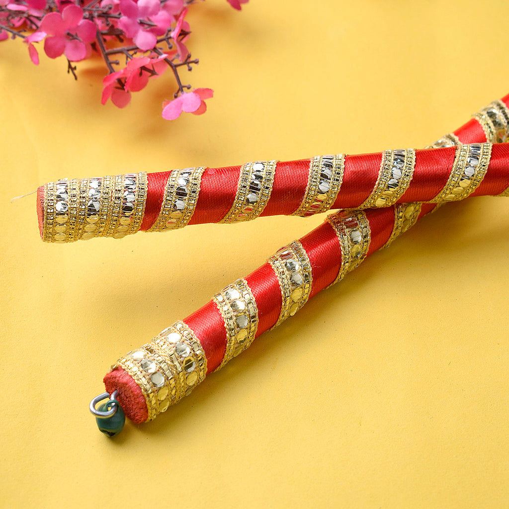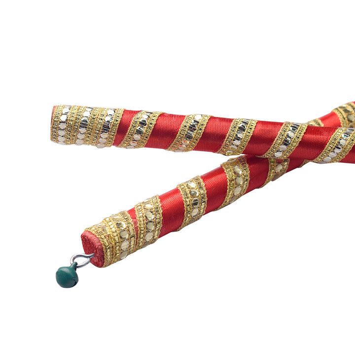 • Material: The Dandiya Sticks are made from High Quality Wooden Sticks , Decorated with Lace Work all over the Dandiya Sticks to give it more Festive Look.