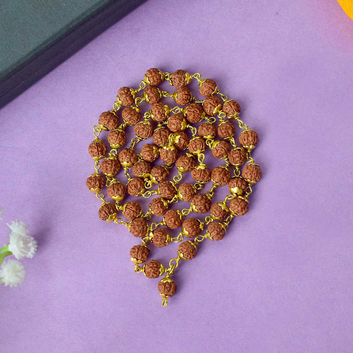 • Material: Certified 5 Mukhi Face Natural Rudraksha mala with Brass Capping