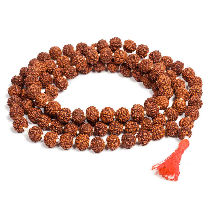 • Material : Made from High Quality Panchmukhi Rudraksha Beads to maintain the purity of Jaap Mala The beads is woven in Red Cotton Thread, A colored Fringe is also joint in the Mala.