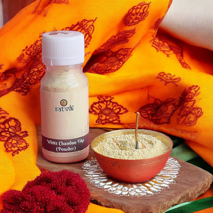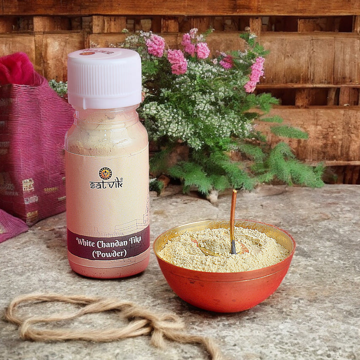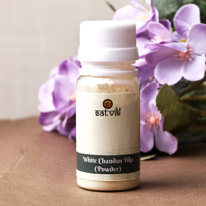 White Chandan tika powder or safed chandan is a very sacred part of Indian Rituals. it used in Pooja, Yajnas, Fire sacrifice as well. White Chandan tilak is auspicious. It stands for prosperity as well. it a must-have ingredient for many auspicious occasions.