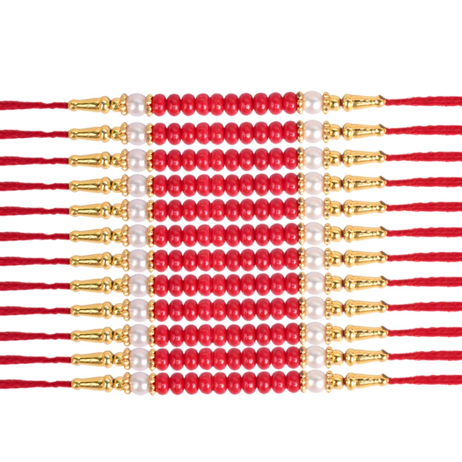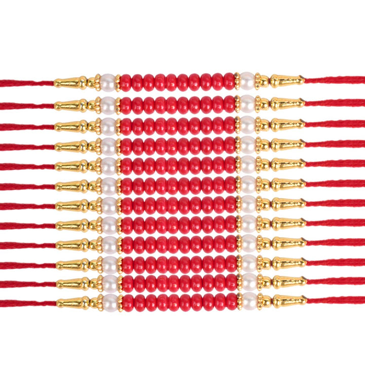 Beaded Rakhi: Adorned with intricate beads, our beaded rakhi collection exudes charm and elegance. Celebrate the joyous bond with your siblings as you tie these vibrant and delightful rakhis on their wrists.