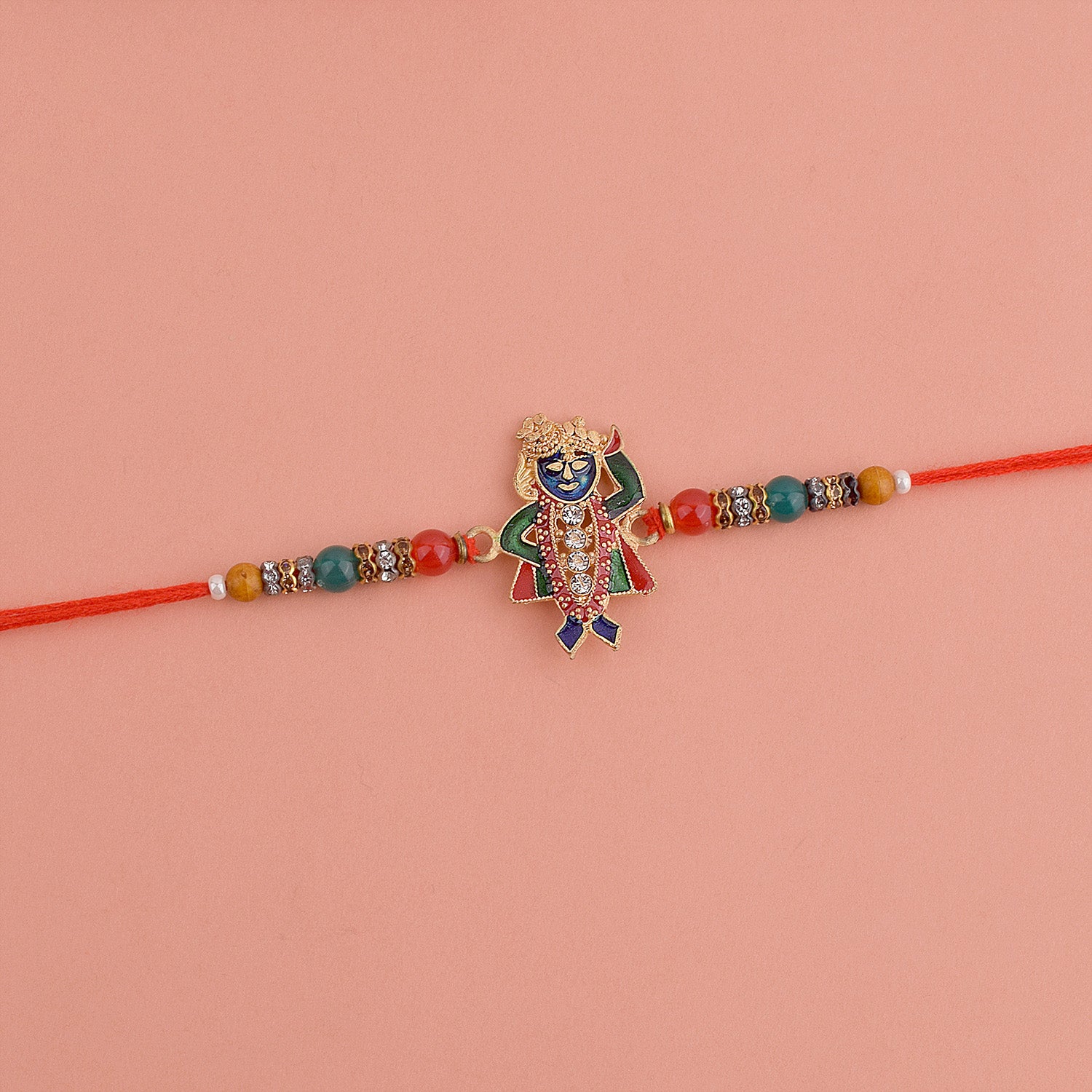 Beaded Rakhi: Adorned with intricate beads, our beaded rakhi collection exudes charm and elegance. Celebrate the joyous bond with your siblings as you tie these vibrant and delightful rakhis on their wrists.