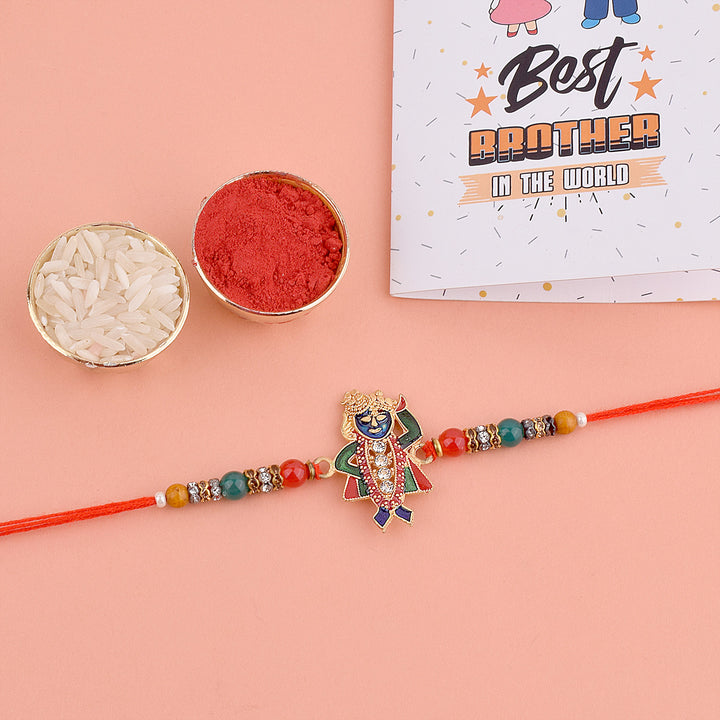 • Package:Β 1 Pc Rakhi, roli akshat and greeting card