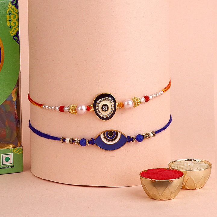 • Package: Set of 2 Bhaiya Rakhi, 1 Greeting card, 1 Roli Chawal Bottle, 1Β Chocolate Pack