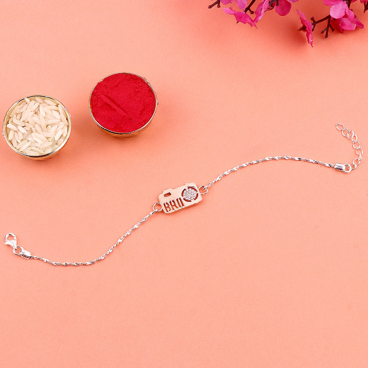 • Item Name: Gleaming 925 Silver Rakhi Symphony: Uniting Hearts with Radiant Threads