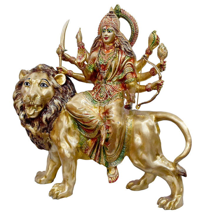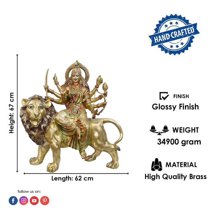 • Material: The Large Brass Durga Statue on the Lion is made from Pure Brass Virgin Material.