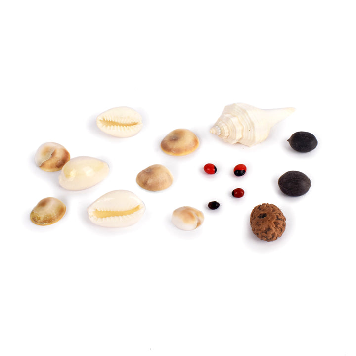 Item Name: Shree Lakshmi Ganesh Yantra Kit with (Shankh, Rudraksha bead, Kamal Gatta bead, Gunja Bead, Kodi, Gomti Chakra)