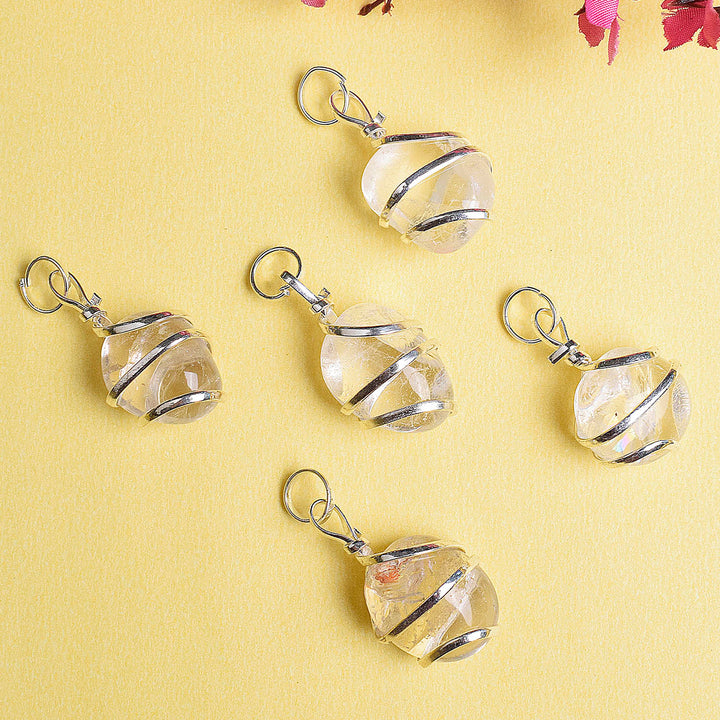 Clear Quartz Wire Wrapped Tumble Crystal Stone Pendant