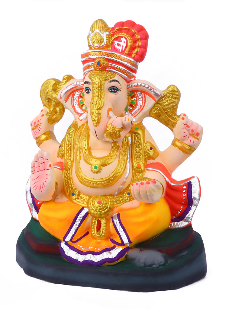 Eco-Friendly Ganesha statues are made of 100% biodegradable and eco-friendly material by using Shadu Mati Clay Mitti, which dissolves easily in water. The colours used are also natural, and they decompose and dissolve in water easily. Although they have been made all across India, West Bengal and Maharashtra often employ skilled artisans to make them.