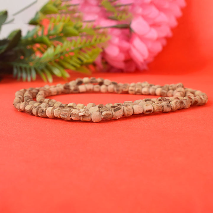A Tulsi Mala is a string of beads made from the wood of the sacred Tulsi plant (Ocimum sanctum). It is widely used in Hinduism, Jainism, and Buddhism for chanting (Japa) and wearing as a protective necklace. The power of Tulsi Mala is believed to enhance spirituality, bring inner peace, and protect the wearer from negative energies.