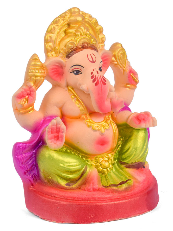 Eco Friendly Ganesha statues are made of 100% biodegradable and eco-friendly material by using Shadu Mati Clay Mitti, which dissolves easily in water. The colours used are also natural, and they decompose and dissolve in water easily. Although they have been made all across India, West Bengal and Maharashtra often employ skilled artisans to make them.