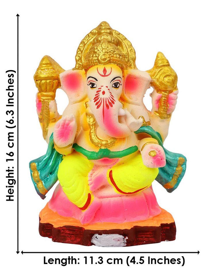 Eco Friendly Ganesha statues are made of 100% biodegradable and eco-friendly material by using Shadu Mati Clay Mitti, which dissolves easily in water. The colours used are also natural, and they decompose and dissolve in water easily. Although they have been made all across India, West Bengal and Maharashtra often employ skilled artisans to make them.