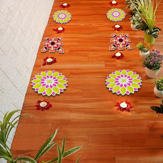 • Durable Materials: Crafted from wooden tools, the mat is built to last, ensuring you can use it for many Diwalis to come. Endless Design Possibilities: Explore an array of designs, from traditional kolam patterns to modern floral and border designs, with our versatile stencils.