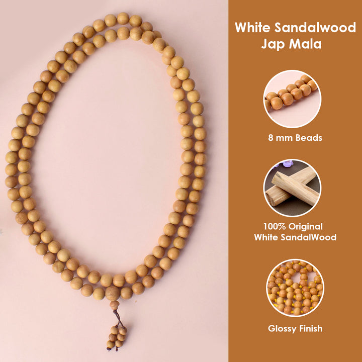 π Buy White Sandalwood Mala Online for Meditation & Puja