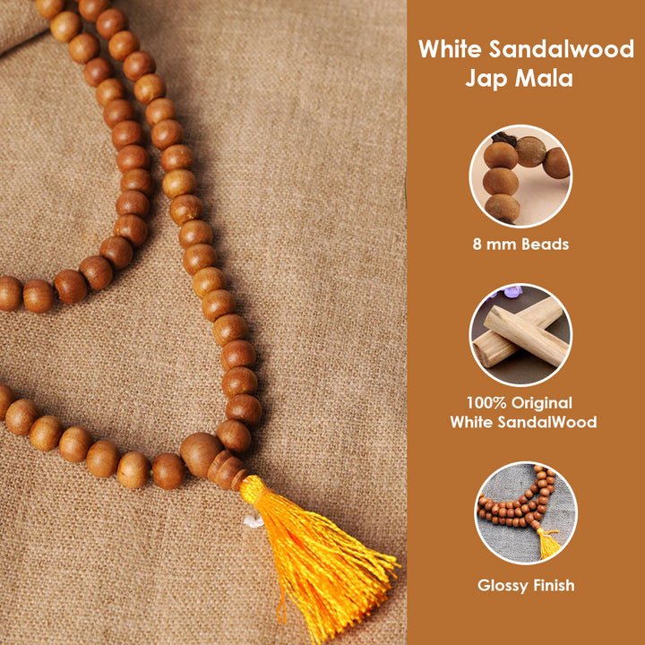 100% Original 8mm White Sandalwood (Chandan) Jap Mala | Satvikstore.in – satvikstore.in