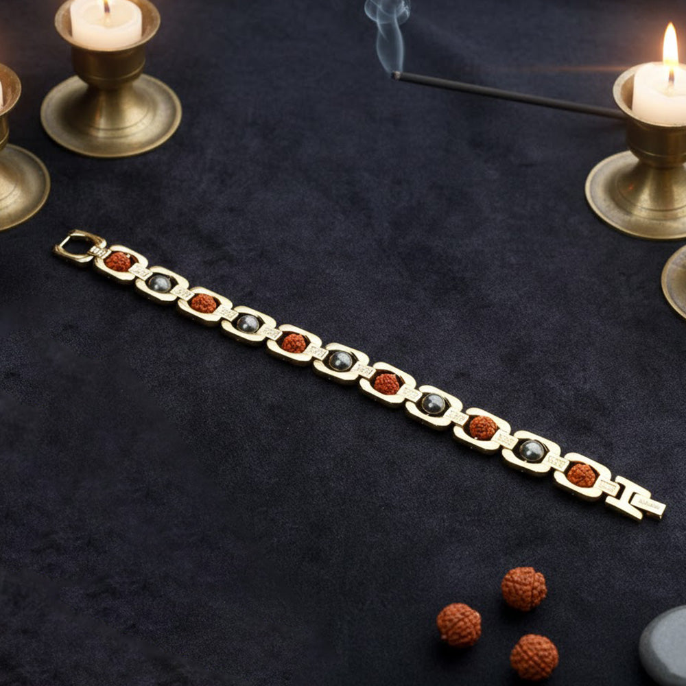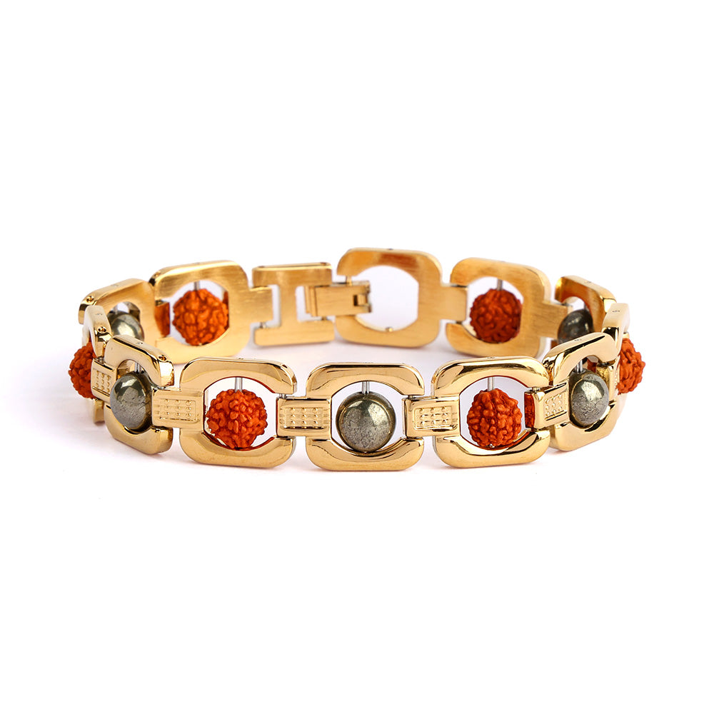 • Item Name: Gold Plated Pyrite Rudraksha Bracelet – Premium IGP Coating