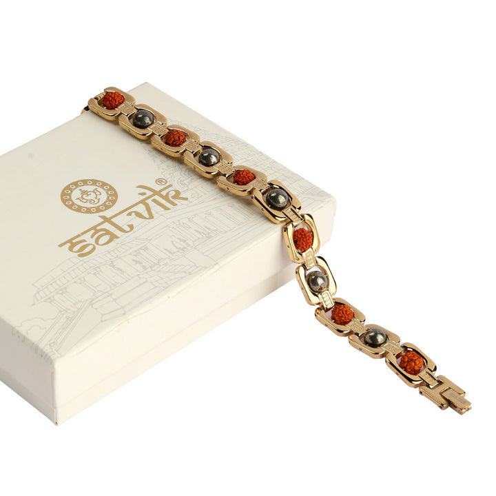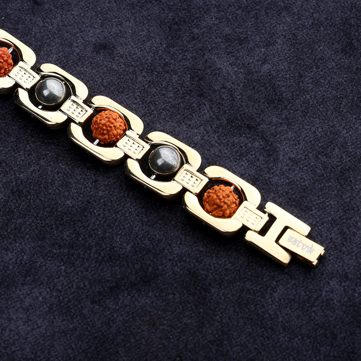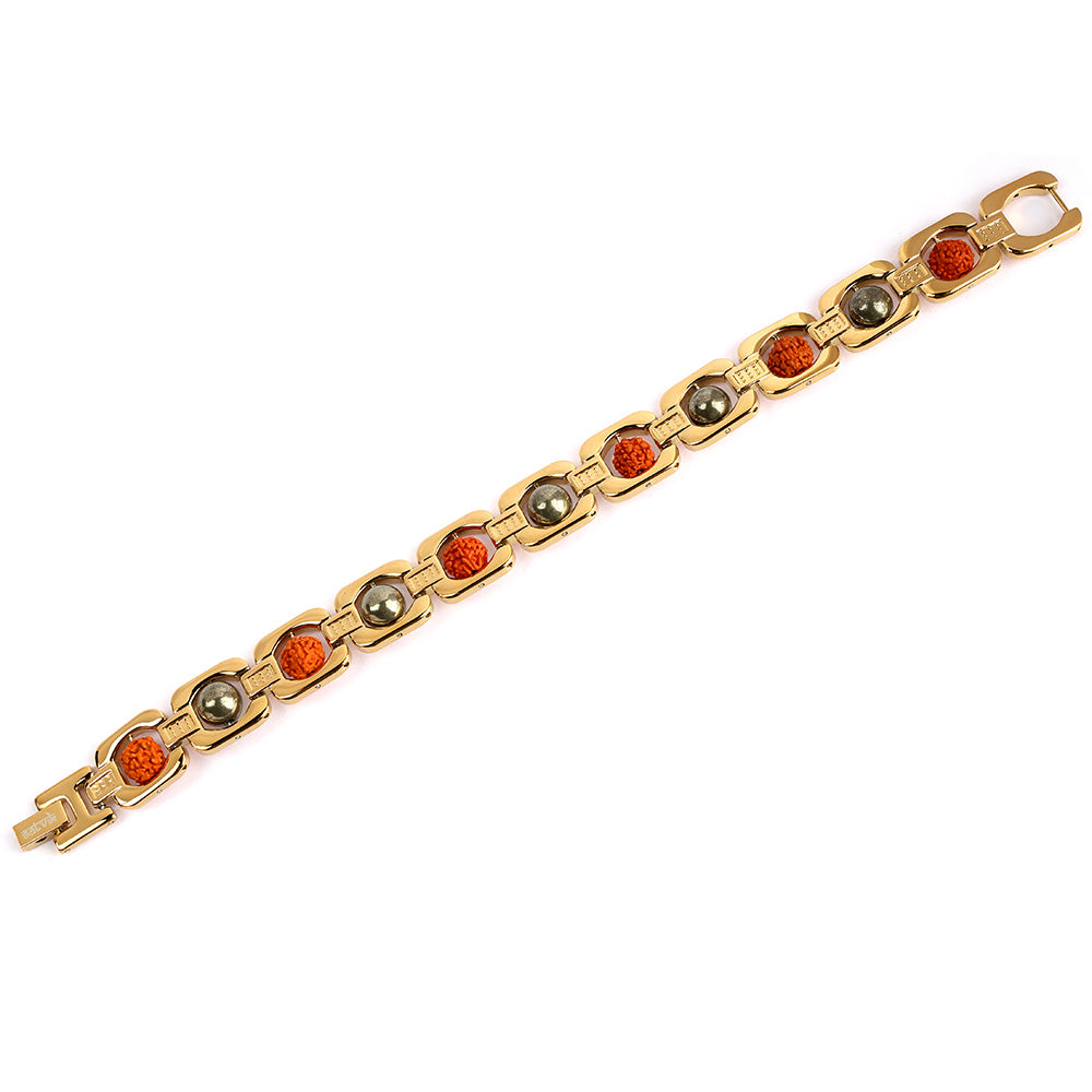 Gold Plated Pyrite Rudraksha Bracelet - IGP Coating | Satvikstore.in – satvikstore.in