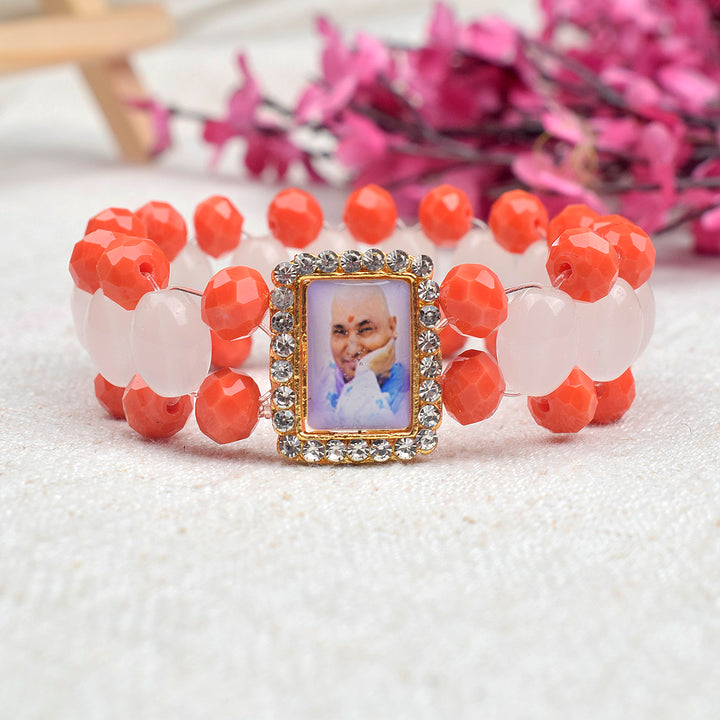 Guru Ji Maharaj Swaroop Orange Beads Artisan Bracelets for Men and Women
