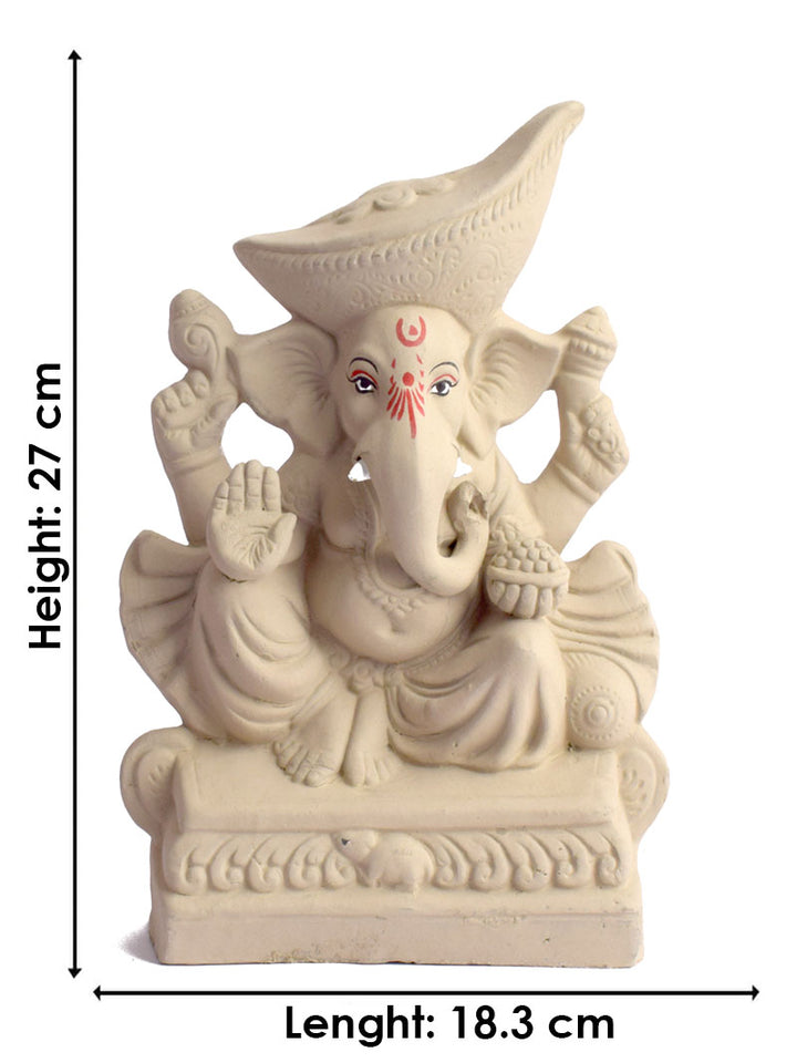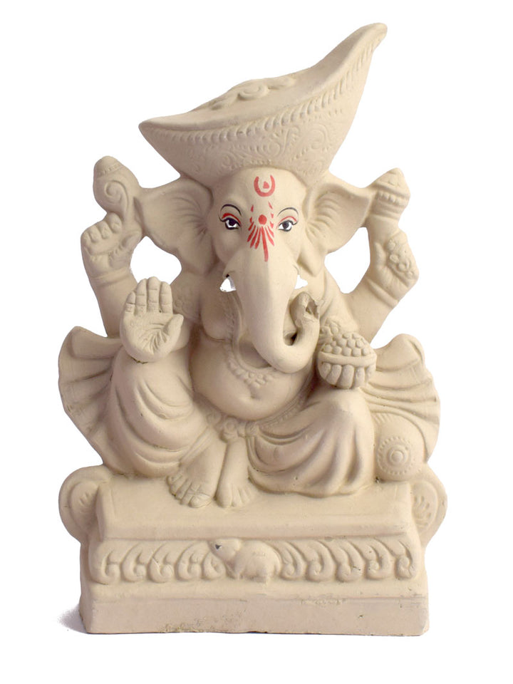 Eco Friendly Ganesha statues are made of 100% biodegradable and eco-friendly material by using Shadu Mati Clay Mitti, which dissolves easily in water. The colours used are also natural, and they decompose and dissolve in water easily. Although they have been made all across India, West Bengal and Maharashtra often employ skilled artisans to make them.