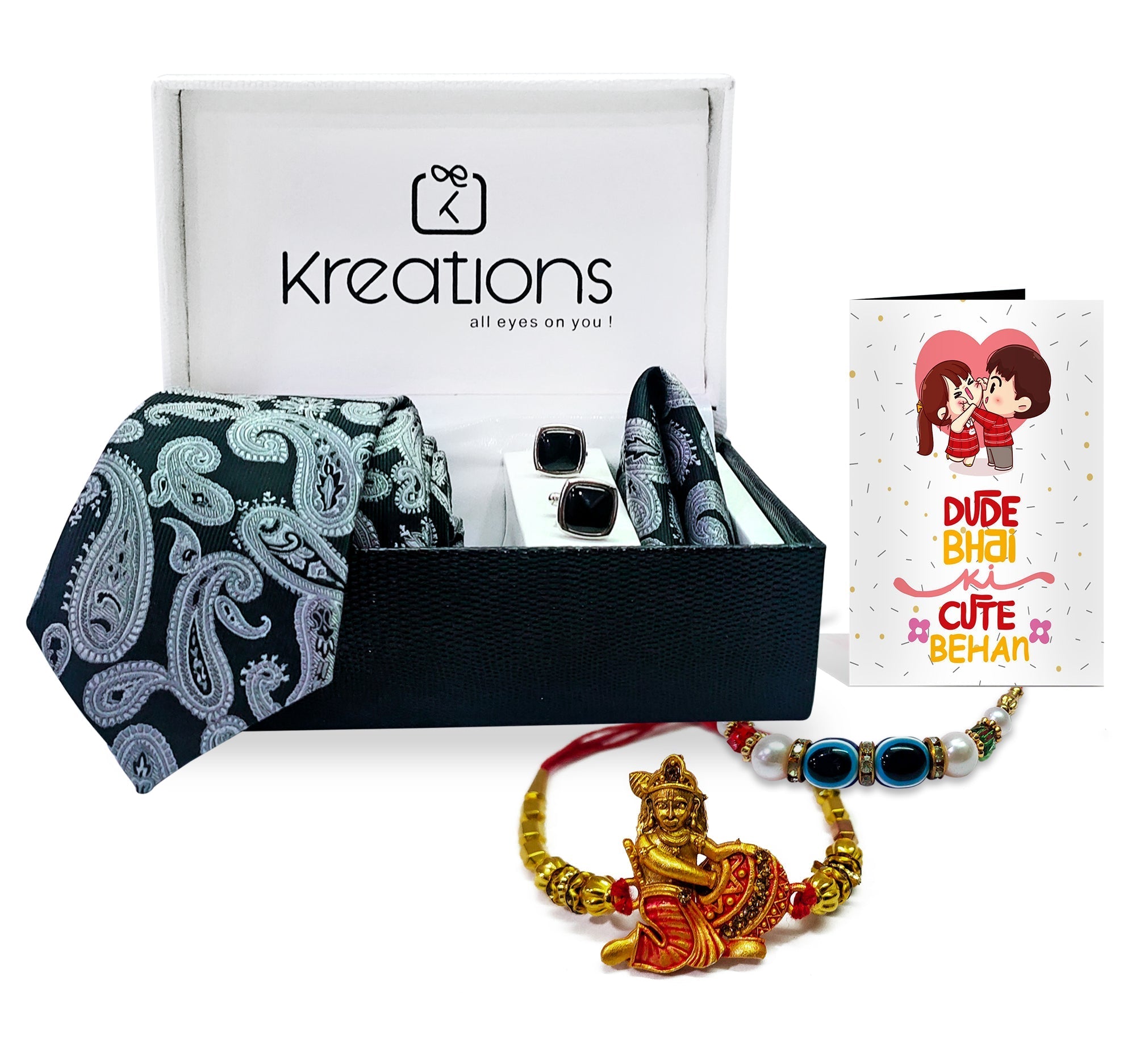Rakhi with Black and Silver Design Tie Gift Combo Set – satvikstore.in